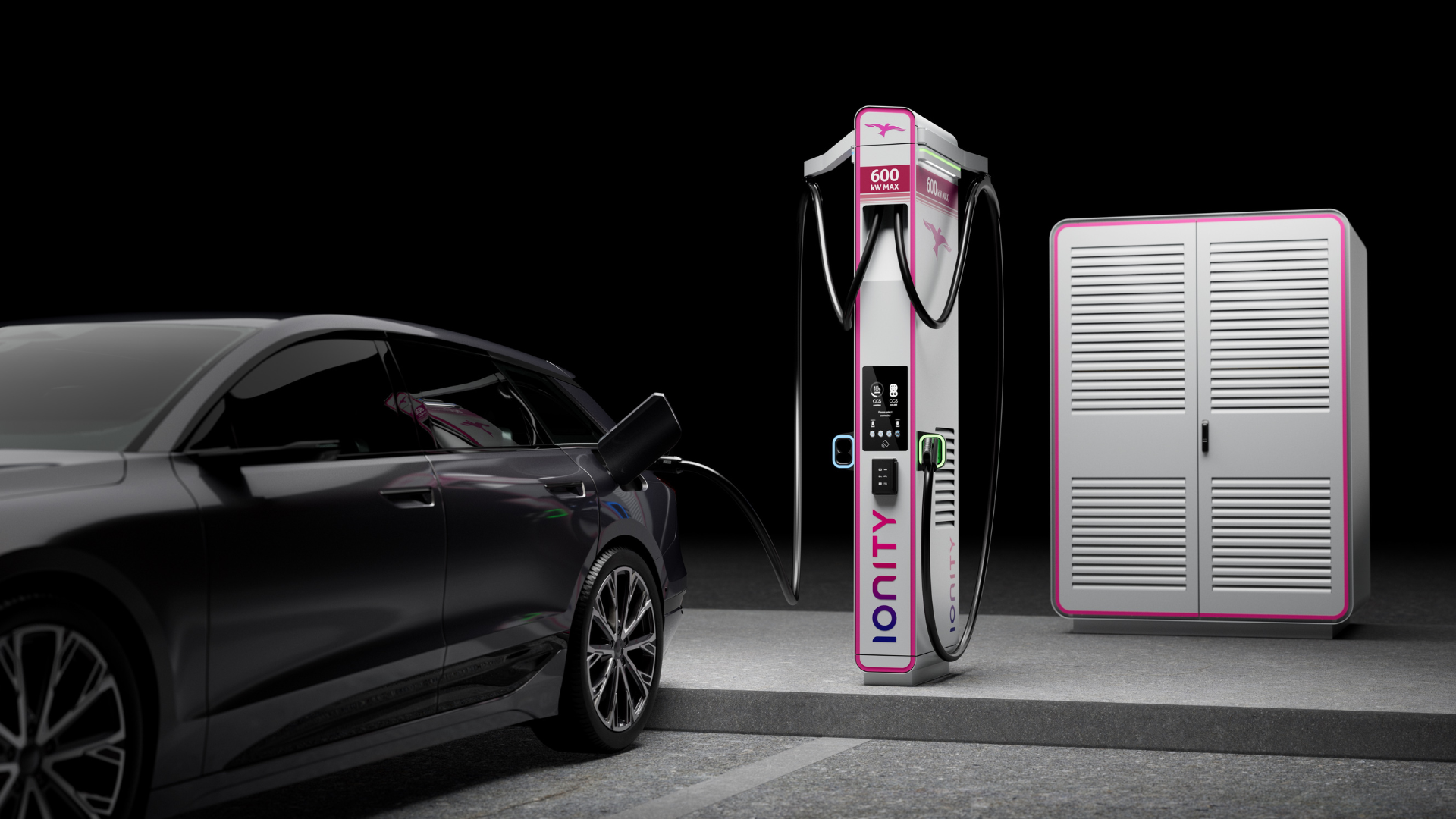 Klíčová vlastnost je inteligentní distribuce výkonu: pokud je nabíjení vytížené a stojí u stojanu více aut, výkon se rovnoměrně rozdělí. Pokud je připojeno pouze jedno vozidlo, může získat až 600 kW – a to při napětí až 1 000 V a proudu 600 A přes standardní konektor CCS. Právě tato hodnota je momentálně maximem, které je pro osobní elektromobily přes CCS technicky realizovatelné.