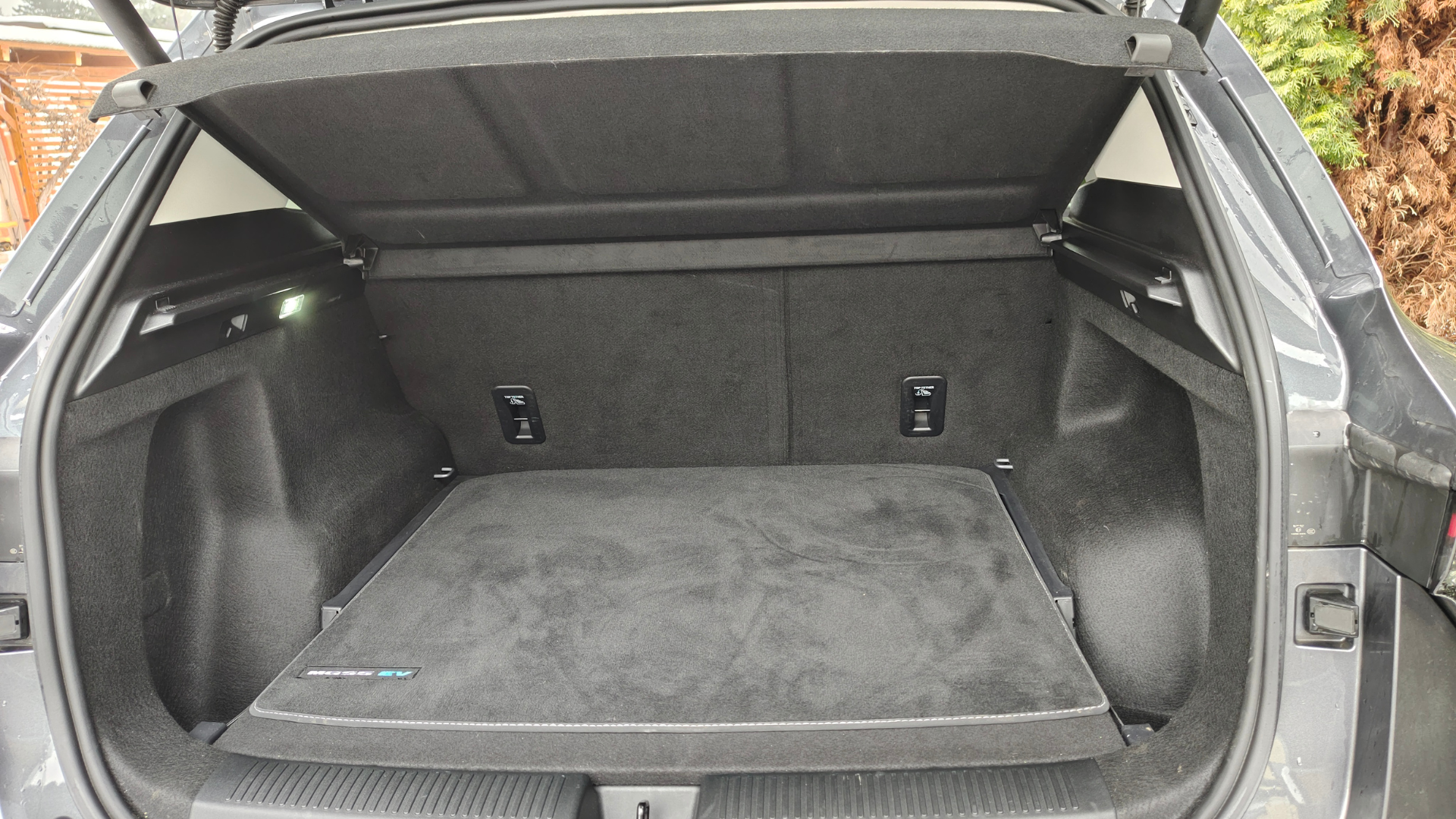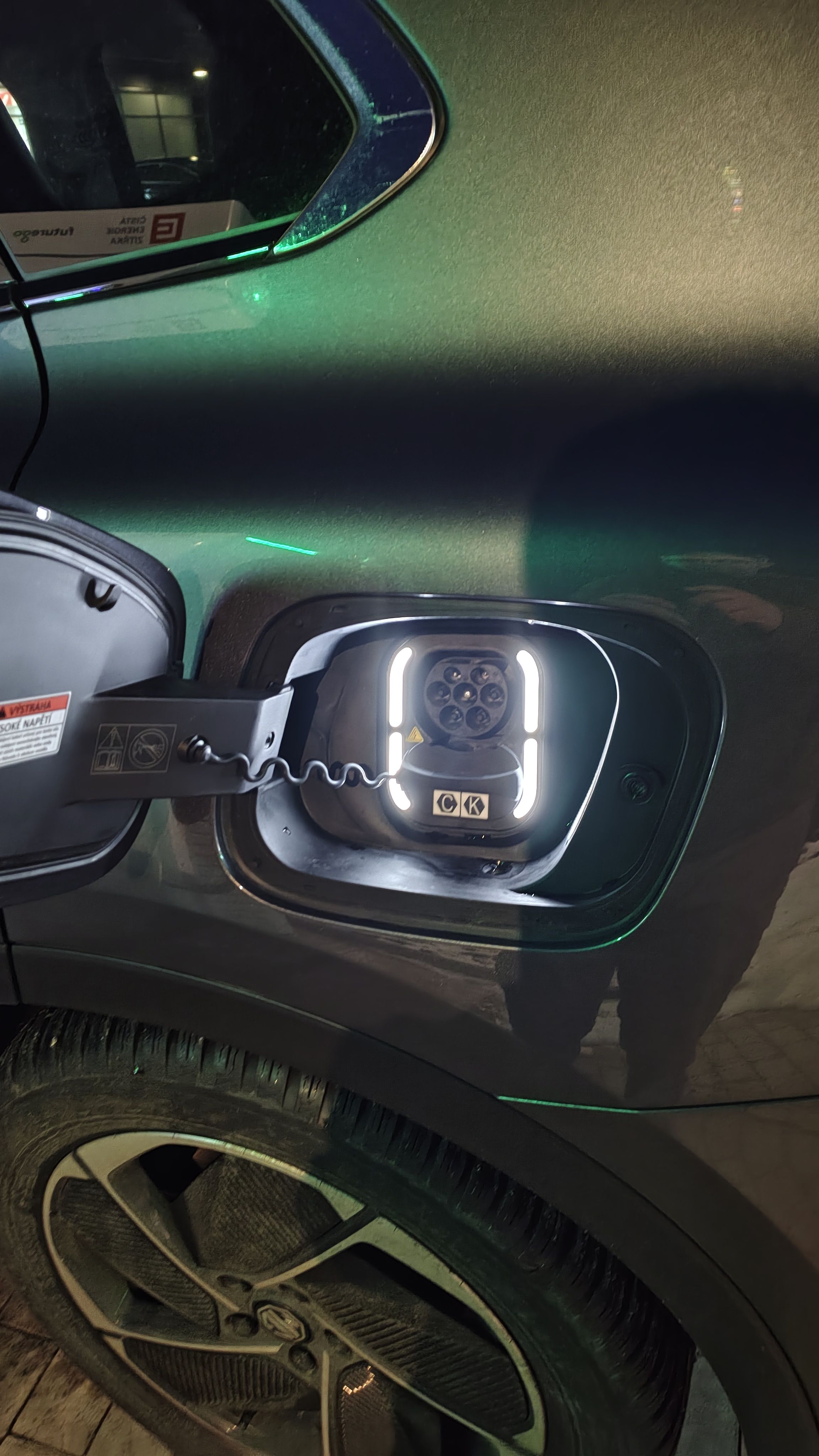 Co nás ale vysloveně potěšilo, je detail, který často chybí i u aut za dva miliony: osvětlený nabíjecí konektor. V zimě, kdy je tma už ve čtyři odpoledne, je to k nezaplacení. Nemusíte šmátrat s kabelem poslepu a odírat lak. Je to drobnost, která ukazuje, že u návrhu někdo přemýšlel nad reálným životem s elektromobilem.