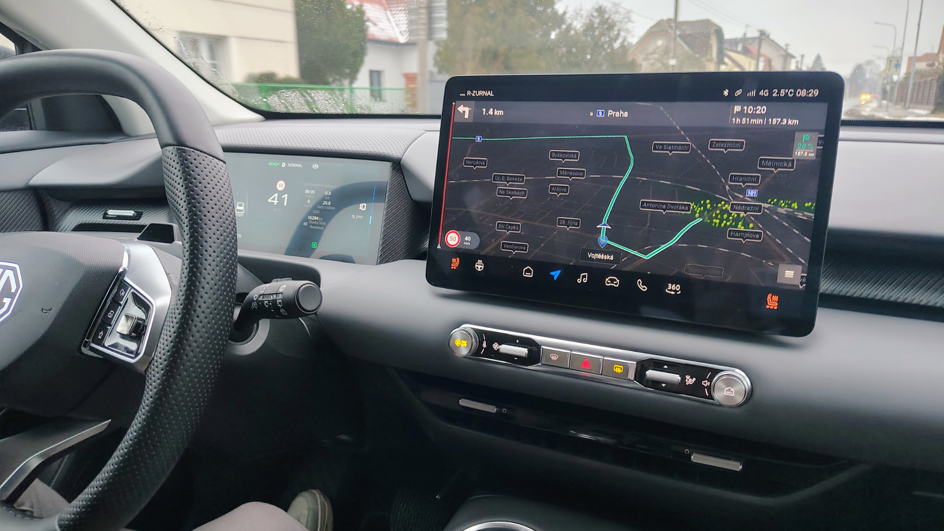 Infotainment vozu nás mile překvapil svou intuitivností. Najdete v něm přesně to, co elektromobilista potřebuje, bez zbytečného balastu. Navigace umí plánovat trasy včetně nabíjecích zastávek, což je v této cenové kategorii velké plus.