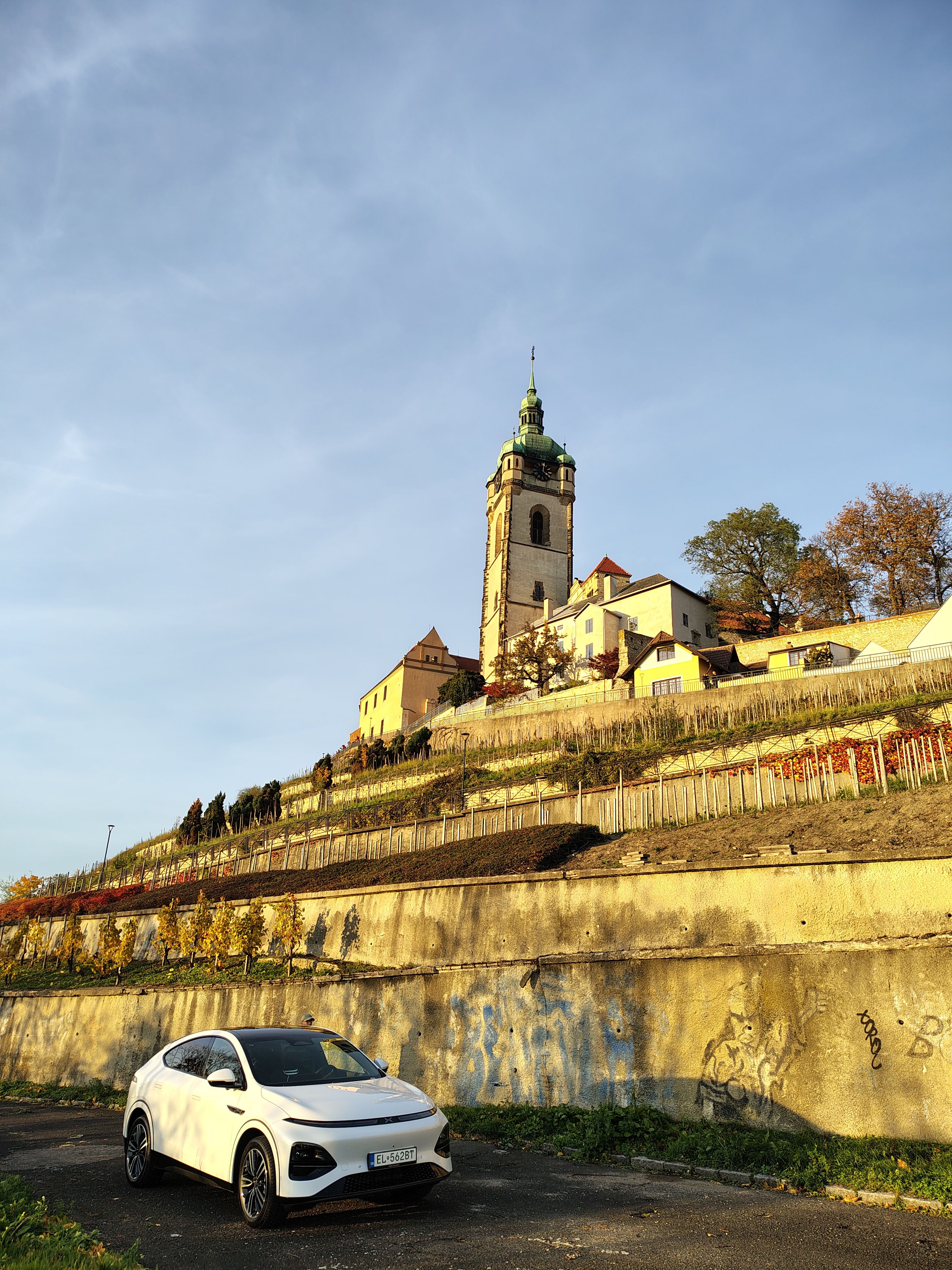 Druhý den testování byl náročnější. Cesta z Mělnicka přes Karlovy Vary až do Krušných hor – celkem přibližně 180 kilometrů v plném obsazení vozu, za chladného počasí s deštěm a silným protivětrem. Vyrazili jsme se 100% nabitou baterií.