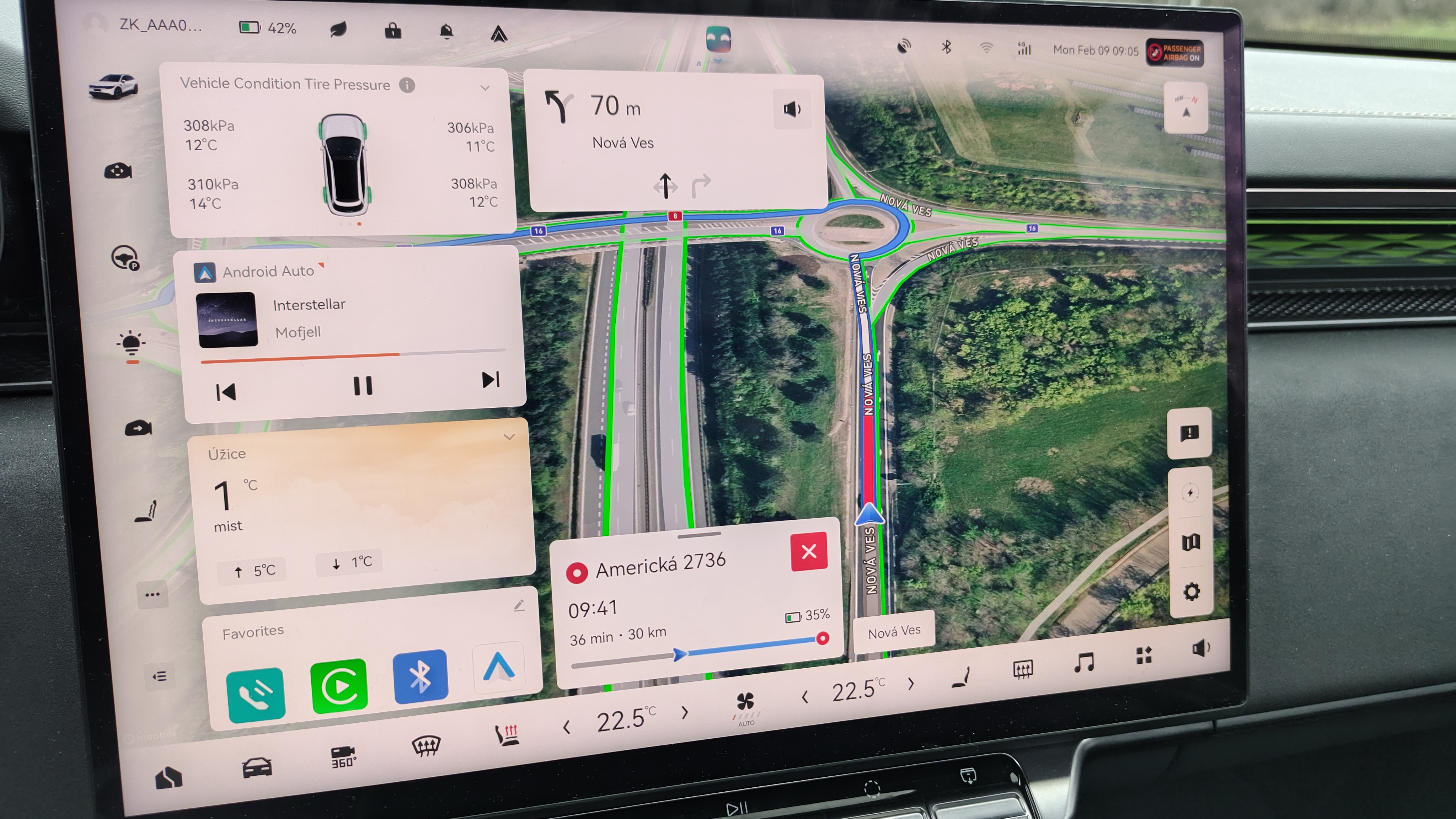 Centrální 16" mini LED displej s rozlišením 3,5K je bleskurychlý – žádné zasekávání, žádné prodlevy. Za tím stojí čip Qualcomm Snapdragon 8295 se 4 GB paměti. V praxi to znamená, že systém reaguje okamžitě a práce s ním je plynulá. K dispozici je Apple CarPlay i Android Auto.
